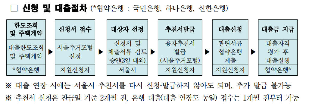 • 대출대상 : 서울시민이거나 대출 후 1개월 이내 서울로 전입 예정인 자. 부부합산 연소득 9천 7백만원 이하인 자. 본인 및 배우자 무주택자