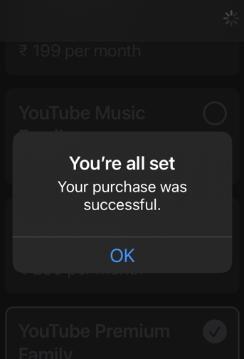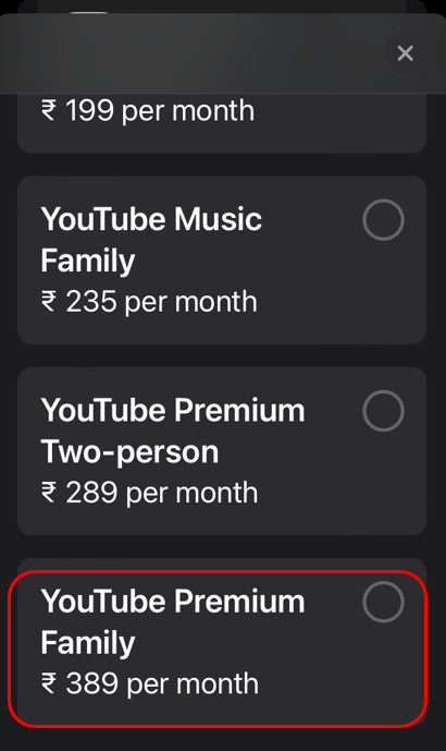 YouTube Premium Family (1 month) – ₹ 389.00/month expires on 17 February.