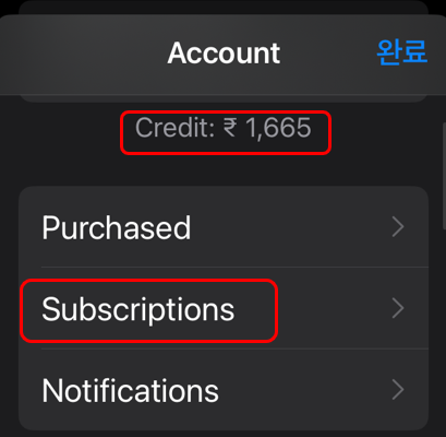 앱스토어서 내 계정을 누르고 Subscriptions로 이동합니다.