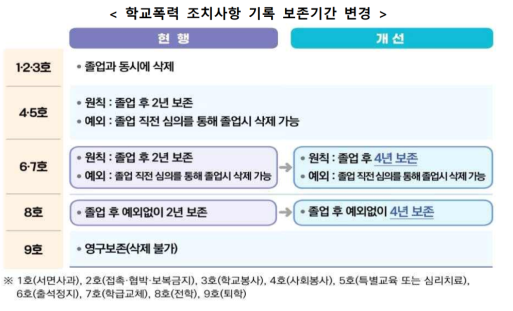 그리고 학교폭력 조치사항 기록 보존기간 역시 변경되는데요.