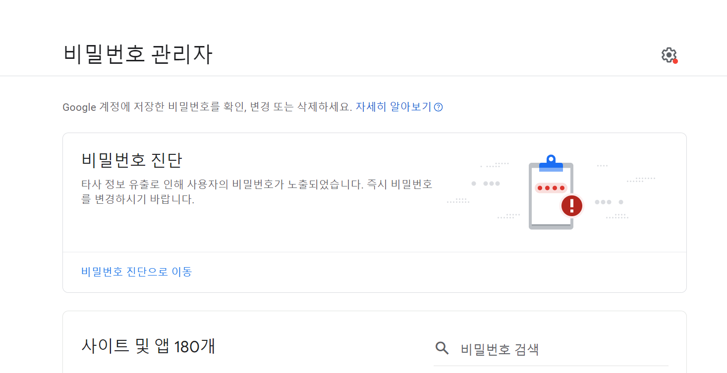 비밀번호가 정보 유출이 된 경우 이곳에서 알람을 통해 알려줍니다.