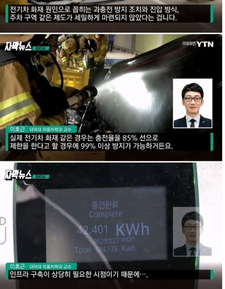 친환경차라고 광고하며 전기차를 보급에만 신경쓰고, 실제로 과충전방지 조치와 전기차 화재시 진압방식 주차 구역 같은 관련 법령이 정리되지 않은 상황이라서 그런데요.