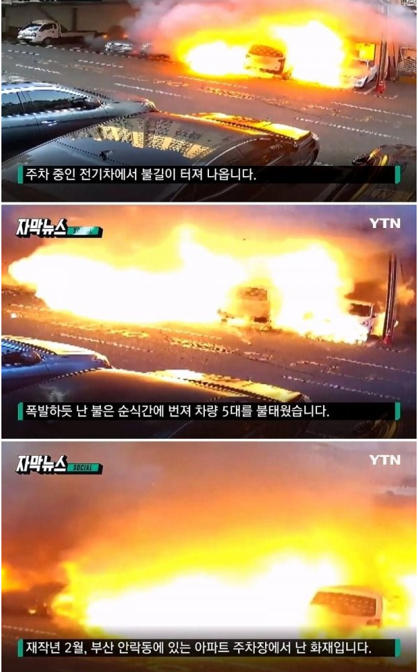 주차 중인 전기차에서 불길이 나면서 폭발하듯 난 불은 순식간에 번져 차량 5대를 불태운 사건 기억하시나요.