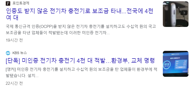 설치된 약 4천여개의 전기차 충전기가 국제 통신규격(OCPP) 인증을 받지 않은 게 환경부 조사로 드러났습니다.