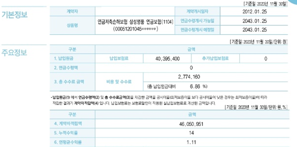 실제로 10년을 납입했는데도 불구하고 수수료가 무려 6.86%나 되고, 연평균 수익률이 1.1%밖에 되지 않았습니다.