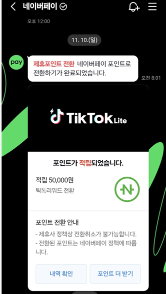 아래처럼 제휴포인트 전환으로 네이버페이로 전환이 완료되었습니다.
