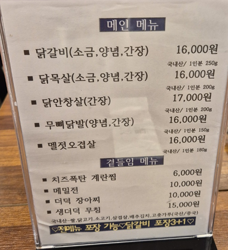 메뉴는 닭갈비와 함께 이집의 시그니처라는 닭안창살이 유명합니다.