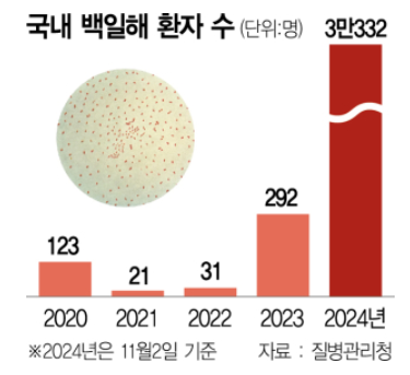 질병관리청에 따르면 올해 들어 국내에서 신고된 백일해 누적 환자는 모두 3만3천327명으로, 지난해 전체 292명의 114배가 넘는다고 합니다. 올해 6∼7월 무렵 환자가 가파르게 늘다 잠시 주춤했는데 10월부터 다시 증가추세라고 합니다.