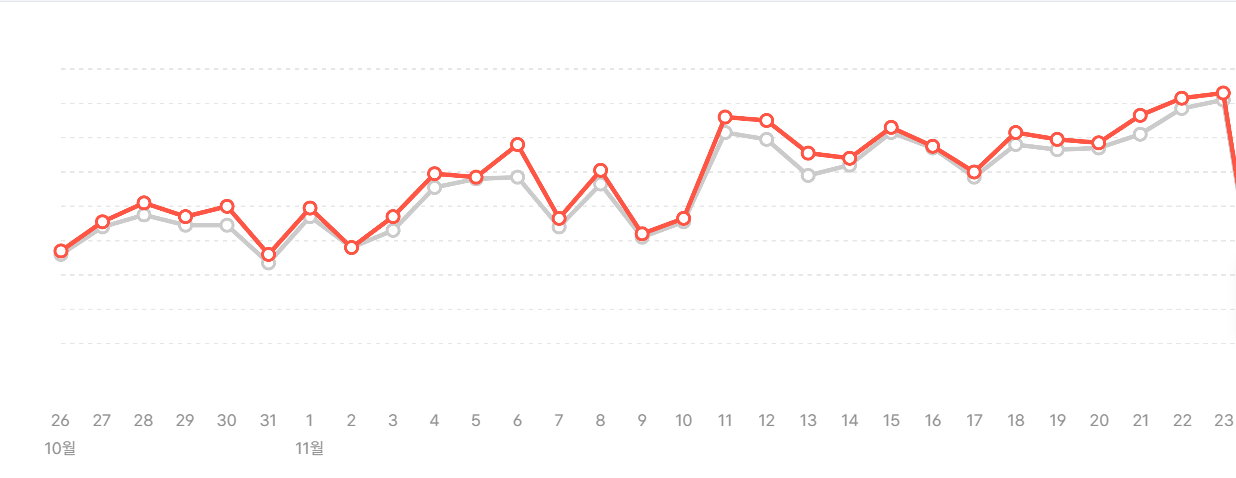 그래도 오블완 챌린지를 하면서 꾸준히 글을 썼더니, 블로그의 조회수가 우상향 하고 있습니다.