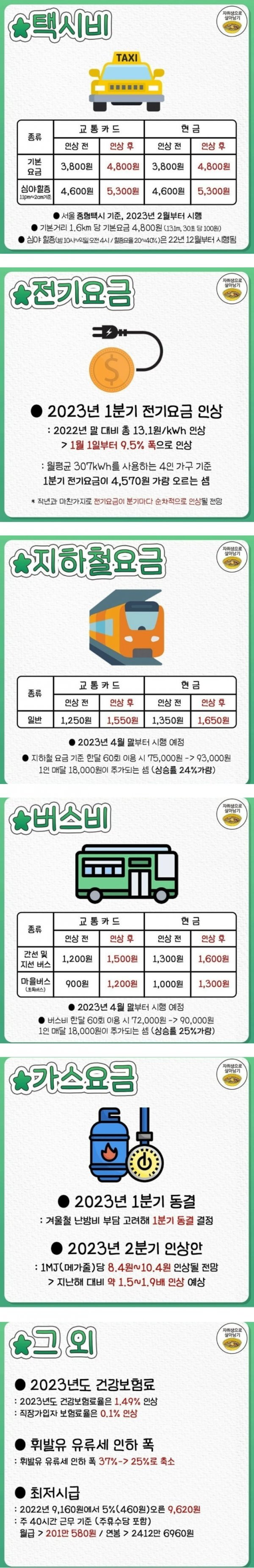 2023년에는 많은 분야의 요금인상이 예정되어 있습니다.