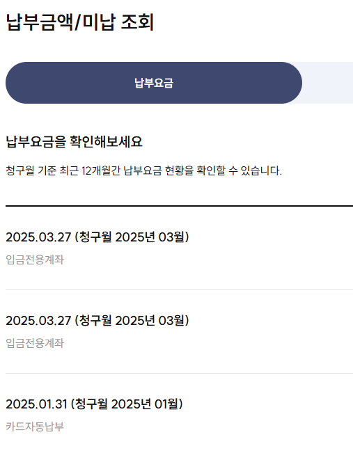 이후 납부방법 변경을 통해서 신규 카드로 변경까지 완료했습니다.