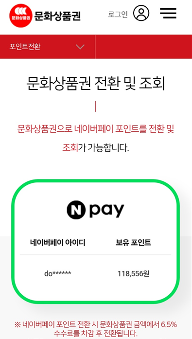 현재 6.5% 차감되고 문화상품권에서 네이버페이 포인트로 전환됩니다.