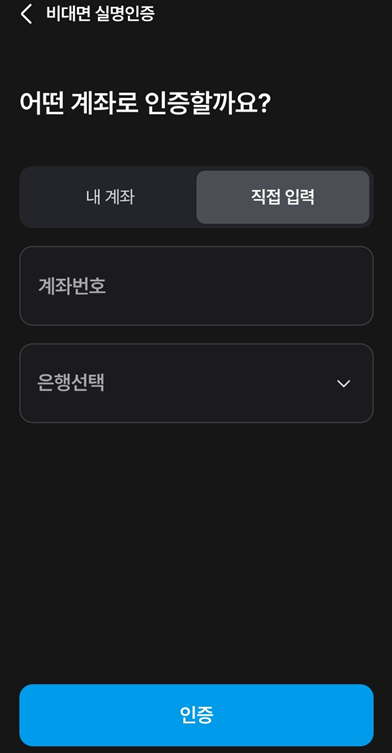 이후 비대면 실명인증을 위해서 신분증과 계좌인증 과정이 추가됩니다.