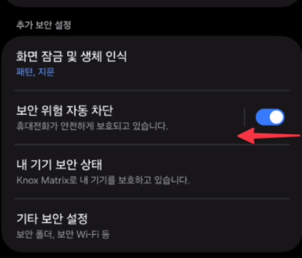 일단 갤럭시는 APK만 있으면 되는데요. 다만 이제 보안이 강화되서 아래의 보안 위험 자동차단을 해지해야 APK설치가 가능합니다.