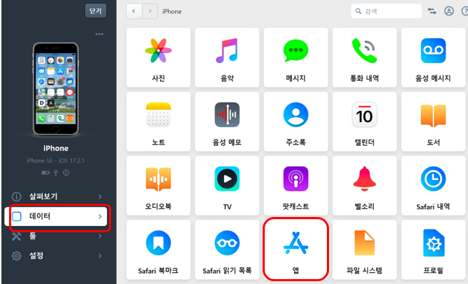 이전버전의 아이패드 등에서 데이터(DATA) - 앱으로 들어갑니다.