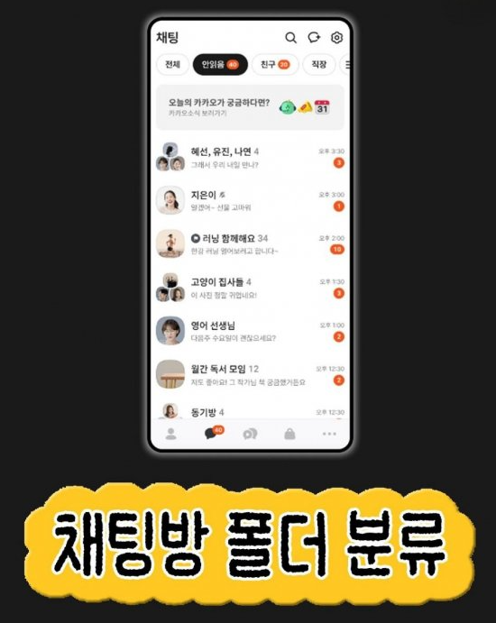 그리고 긍정적인 부분은 채팅방을 폴더로 분류해서 회사라던지, 친구를 구분해서 볼 수 있는 점은 장점입니다.