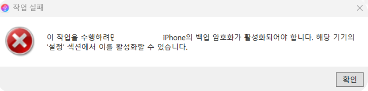 그러면 아래처럼 진행이 됩니다. 다만 작업중에 백업 암호화가 필요하다는 메시지가 나올 수 있는데요.