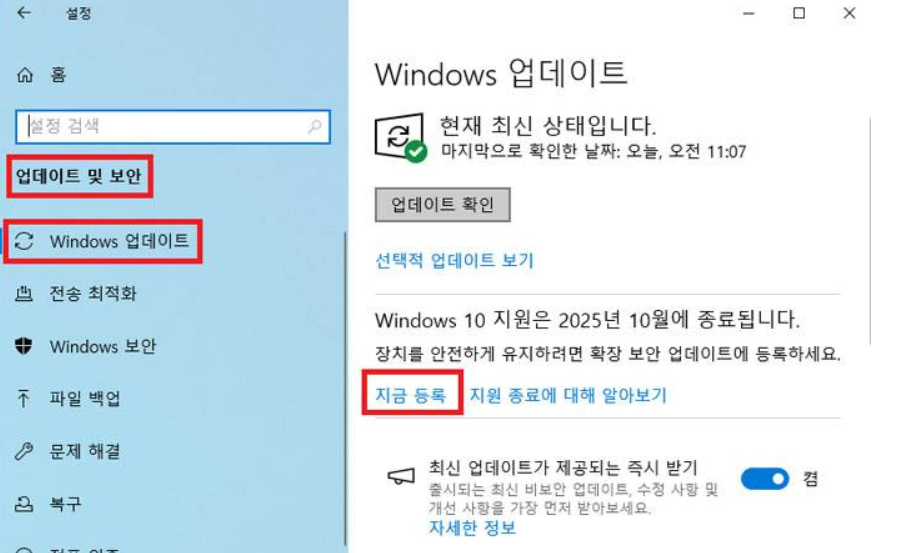 MS에서는 이번 윈도우 10 보안 업데이트 만료와 관련하여 확장된 보안 업데이트를 1년간 추가 제공한다고 하는데요.