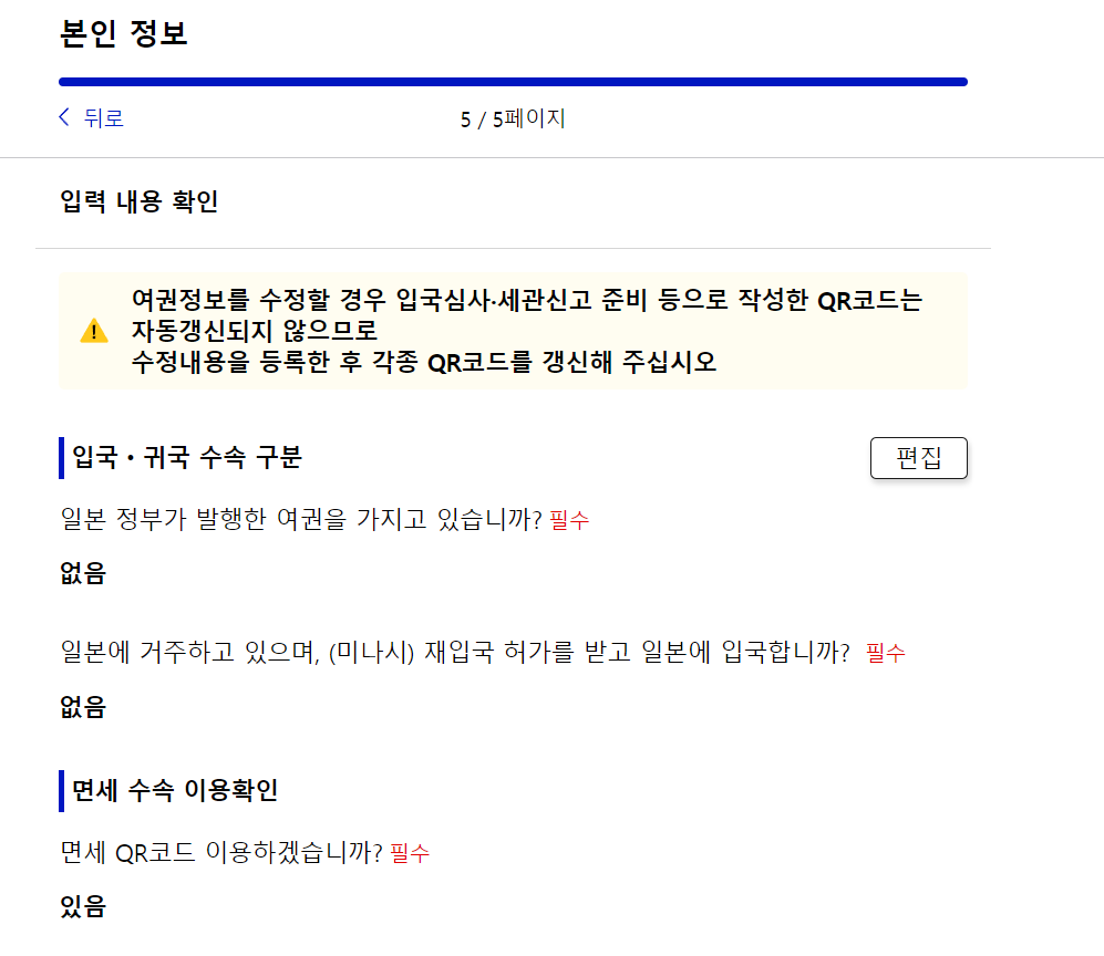 여기까지하면 이제 일본 전자 출입국 등록이 모두 완료되었습니다.