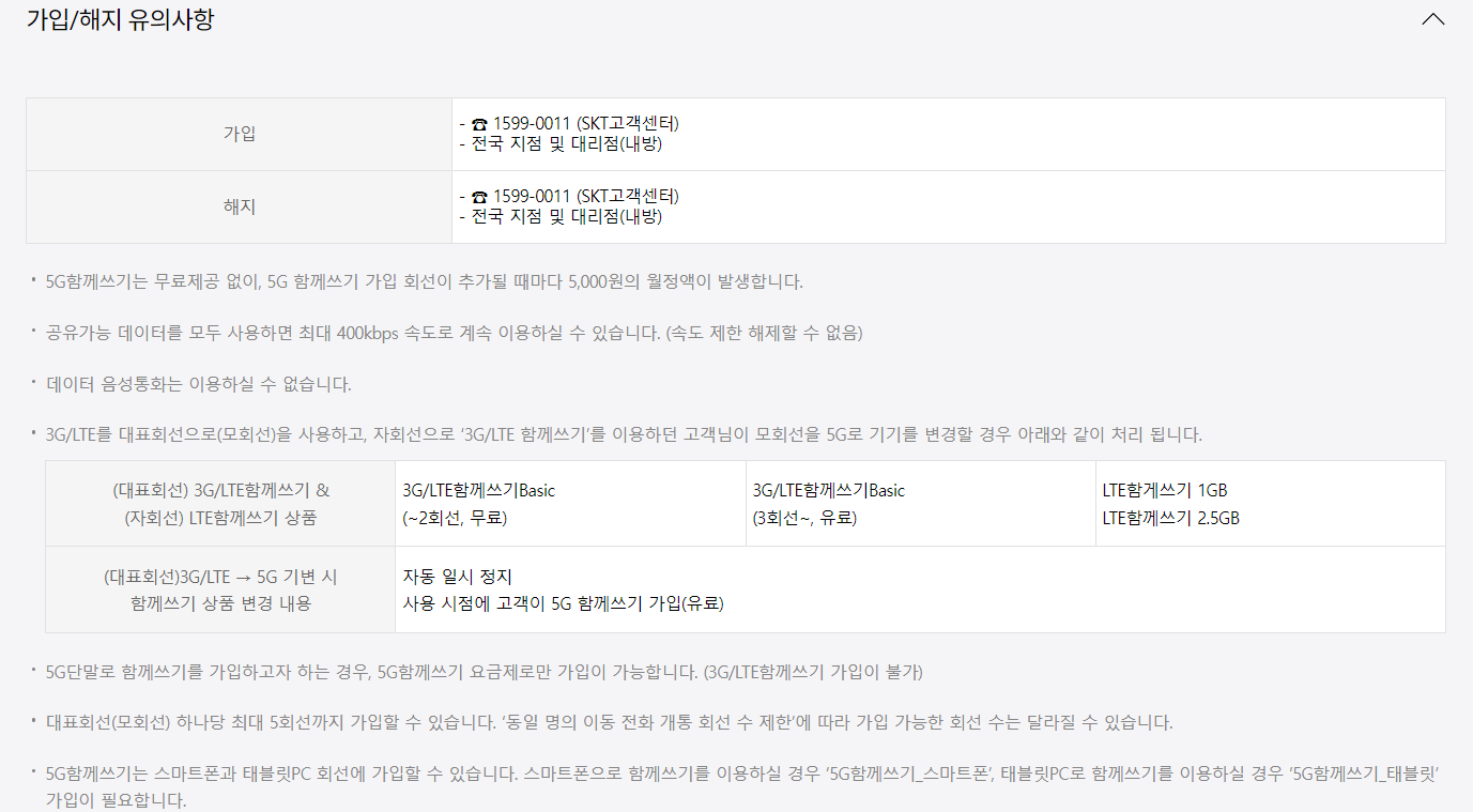 5G 함께쓰기 무료 기준