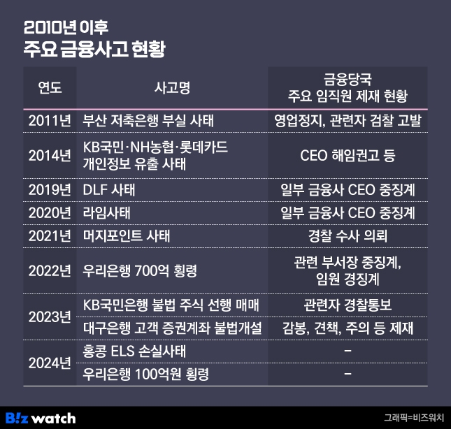 이에 금감원은 올해 1월 700억원 횡령 사고와 관련해 우리은행에 '기관경고', 관련 직원들에게는 '정직' 등에 준하는 중징계를 내린 상황입니다. 하지만 얼마 되지 않아 또 횡령사고가 발생했는데요.