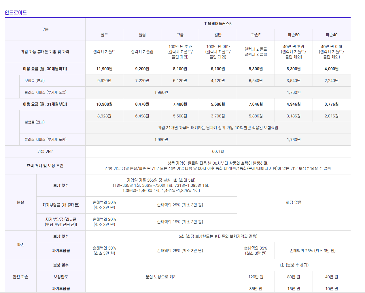다만 점점 핸드폰 가격이 오르다보니, 그리고 폴드의 경우 액정 파손시 수리비가 워낙 높아서 부담이 많은데요. 그래서 각 통신사에서는 핸드폰 파손 보험을 판매하고 있습니다.
