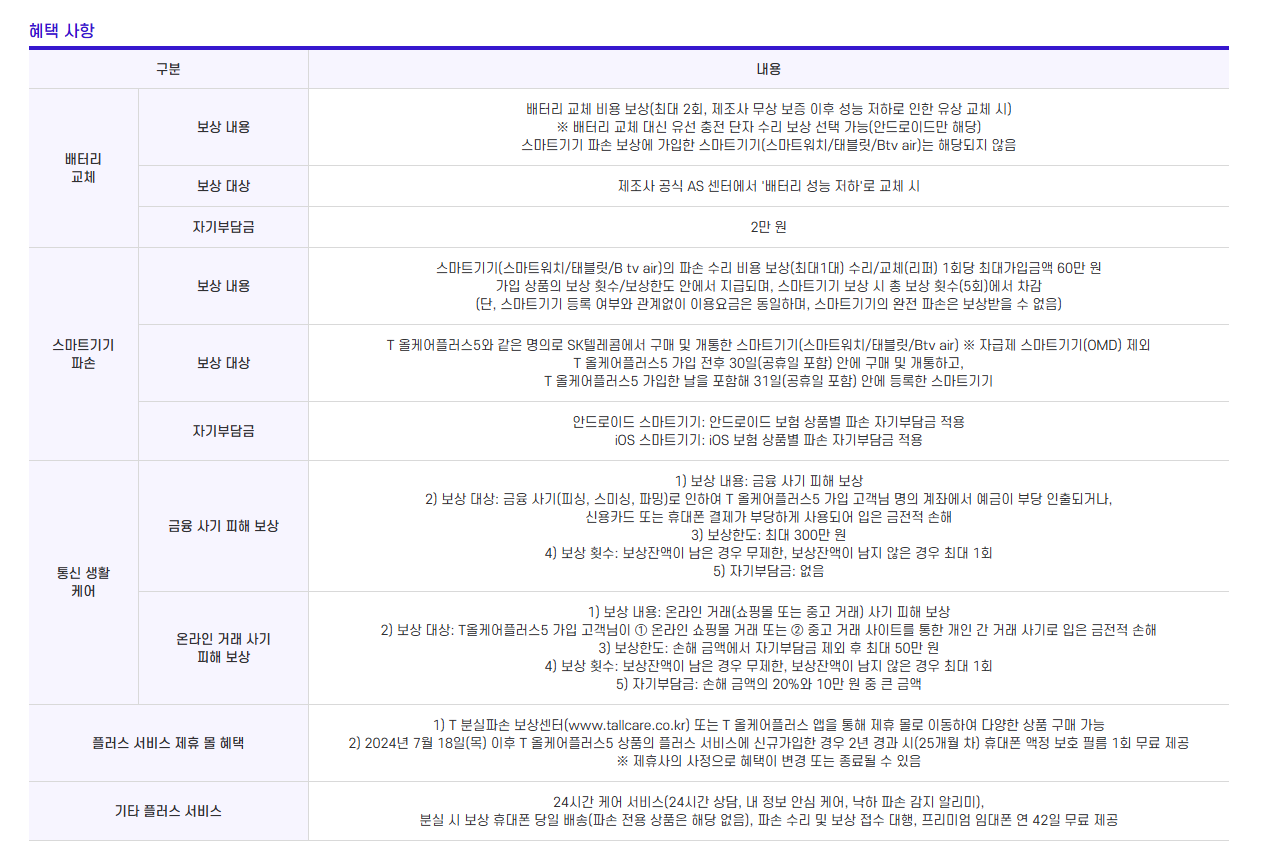 그 외에 스마트기기파손, 통신생활케어 등으로 사기에 대한 내용도 보상해줍니다.