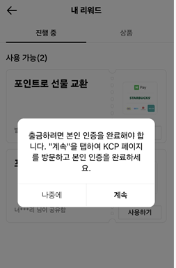 리워드를 통해 획득한 금액을 현금 출금을 통해서 출금하면 됩니다.