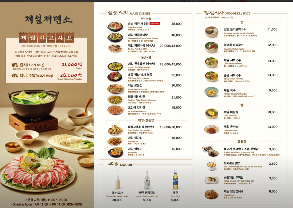 별미국수와 샤브샤브, 전통주와 일품요리를 즐길 수 있는 제일제면소 명동점