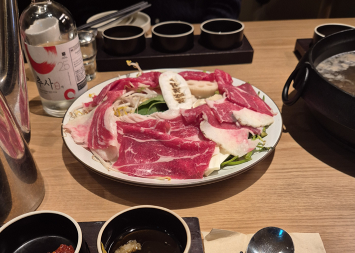제일 잘 나간다는 샤브샤브를 시키면 아래처럼 기본 세팅을 가져다 주십니다.