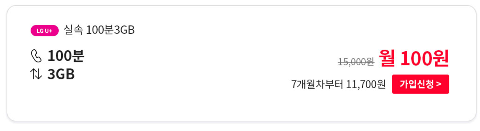 LGU망은 3G 100분 동일 조건에 6개월 할인이네요.