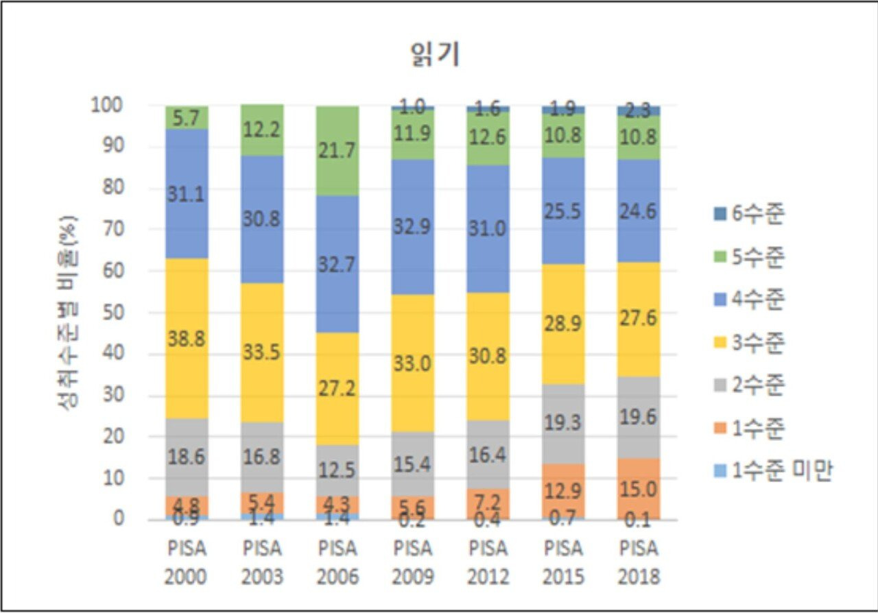 이로 인하여 청소년의 문해력에 대한 이슈가 커지고 있습니다. 다만 놀라운 점은 6수준도 늘어나고 있다는 점인데요.